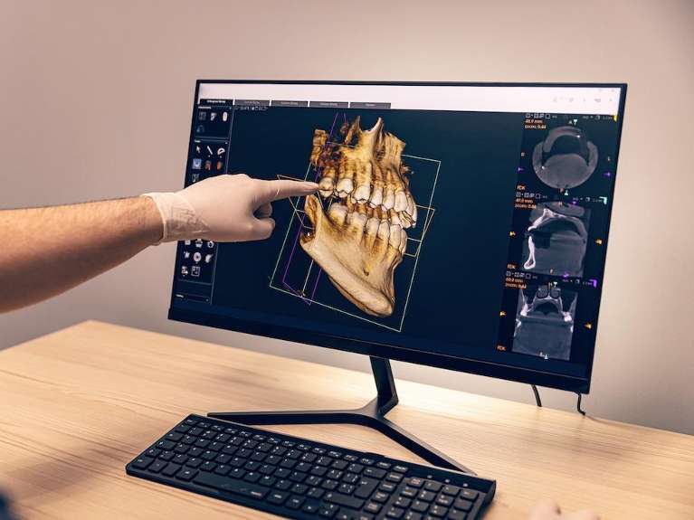 Our state-of-the-art CBCT (Cone Beam Computed Tomography) scanner provides detailed 3-D imaging of your teeth, jaw and surrounding structures. This advanced technology allows us to plan treatments with exceptional precision, particularly for dental implants and complex procedures.
